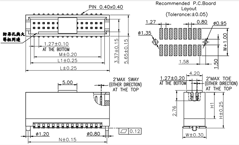 P/H1.27mm Box header EC244(簡牛)