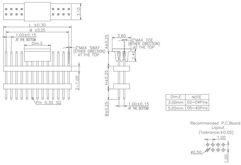 P/H1.0 mm 單排排針 CA101