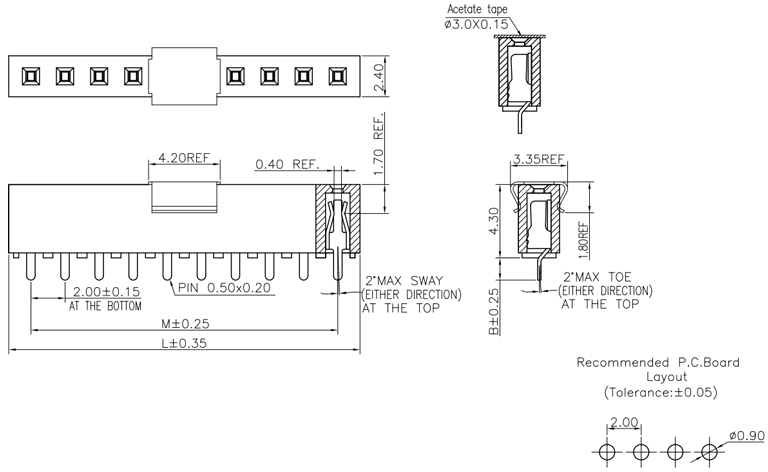 絕緣材料:PBT,尼龍,LCP,UL 94V-0
