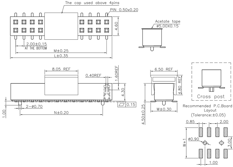 絕緣材料:PBT,尼龍,LCP,UL 94V-0