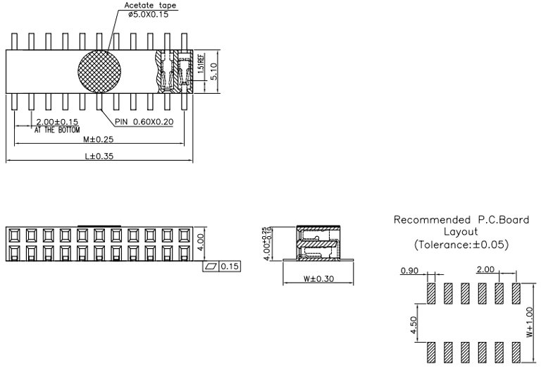 絕緣材料:PBT,尼龍,LCP,UL 94V-0